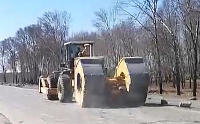 冲击压路机破碎水泥路面
